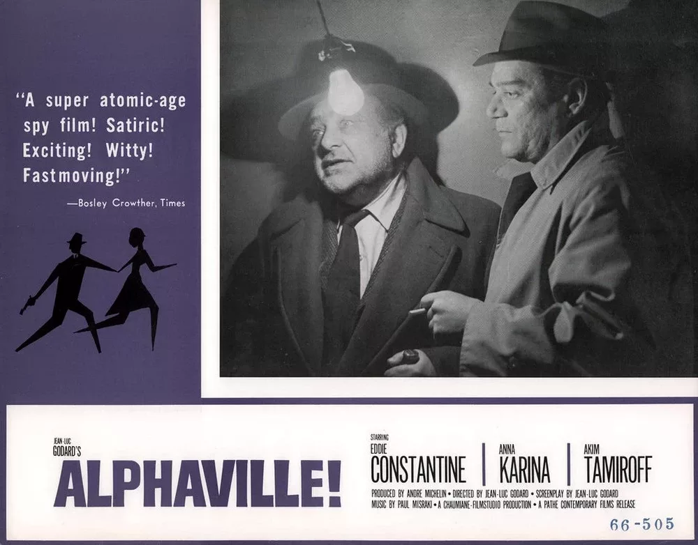 Το Alphaville είναι ένα σουρεαλιστικό, νουάρ επιστημονικής φαντασίας, όπου ο πράκτορας Λέμμυ Κόσιον (Lemmy Caution) φτάνει σε μια μελλοντική, διαστημική, αυταρχική πόλη που κυβερνάται από τον υπερυπολογιστή Alpha 60. Στην Αλφαβίλ, λογική και τεχνοκρατία έχουν αντικαταστήσει τα συναισθήματα· η ποίηση και η αγάπη θεωρούνται εγκλήματα.