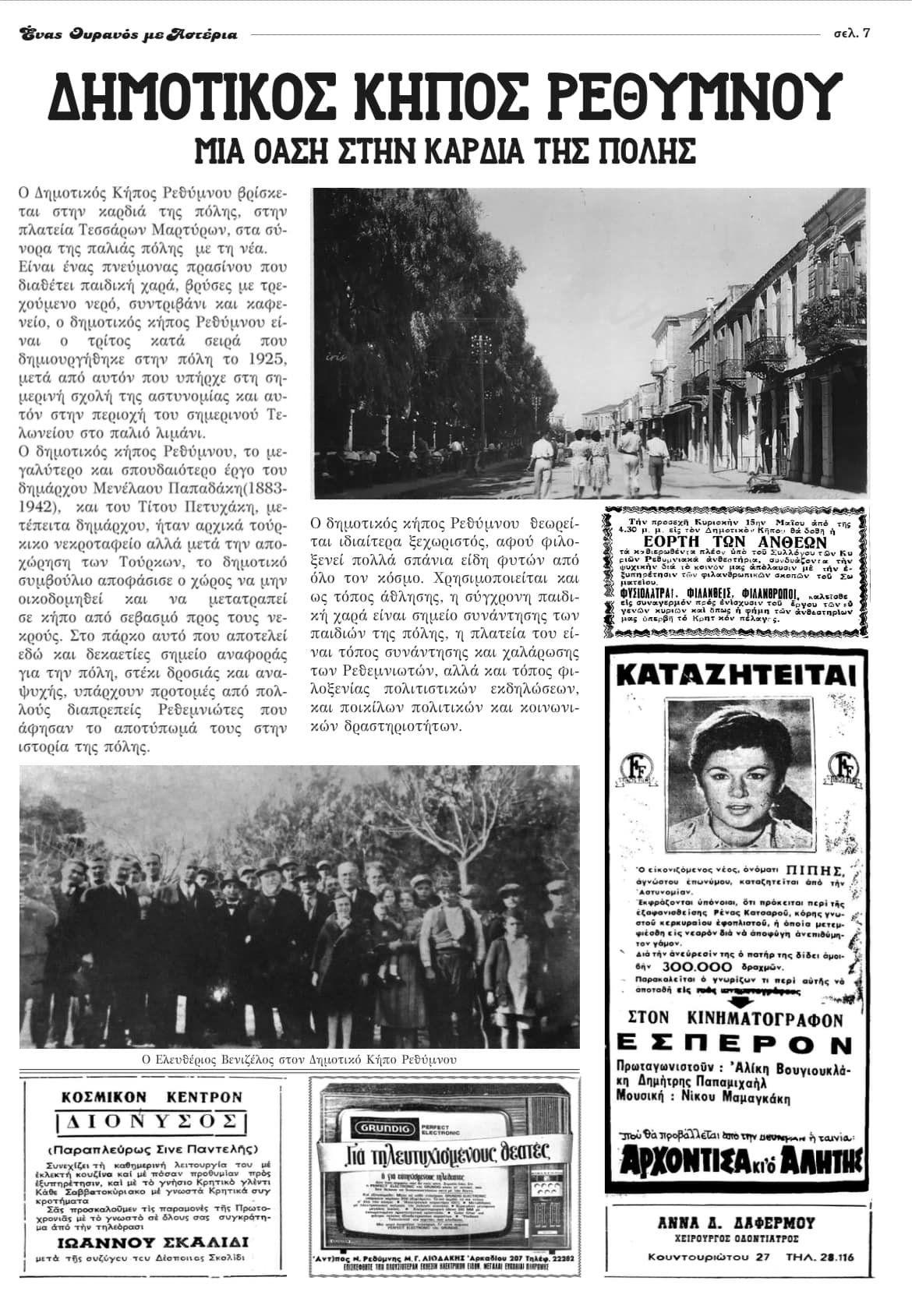 στον Δημοτικό Κήπο Ρεθύμνου, με ώρα έναρξης κάθε προβολής τις 21.00.