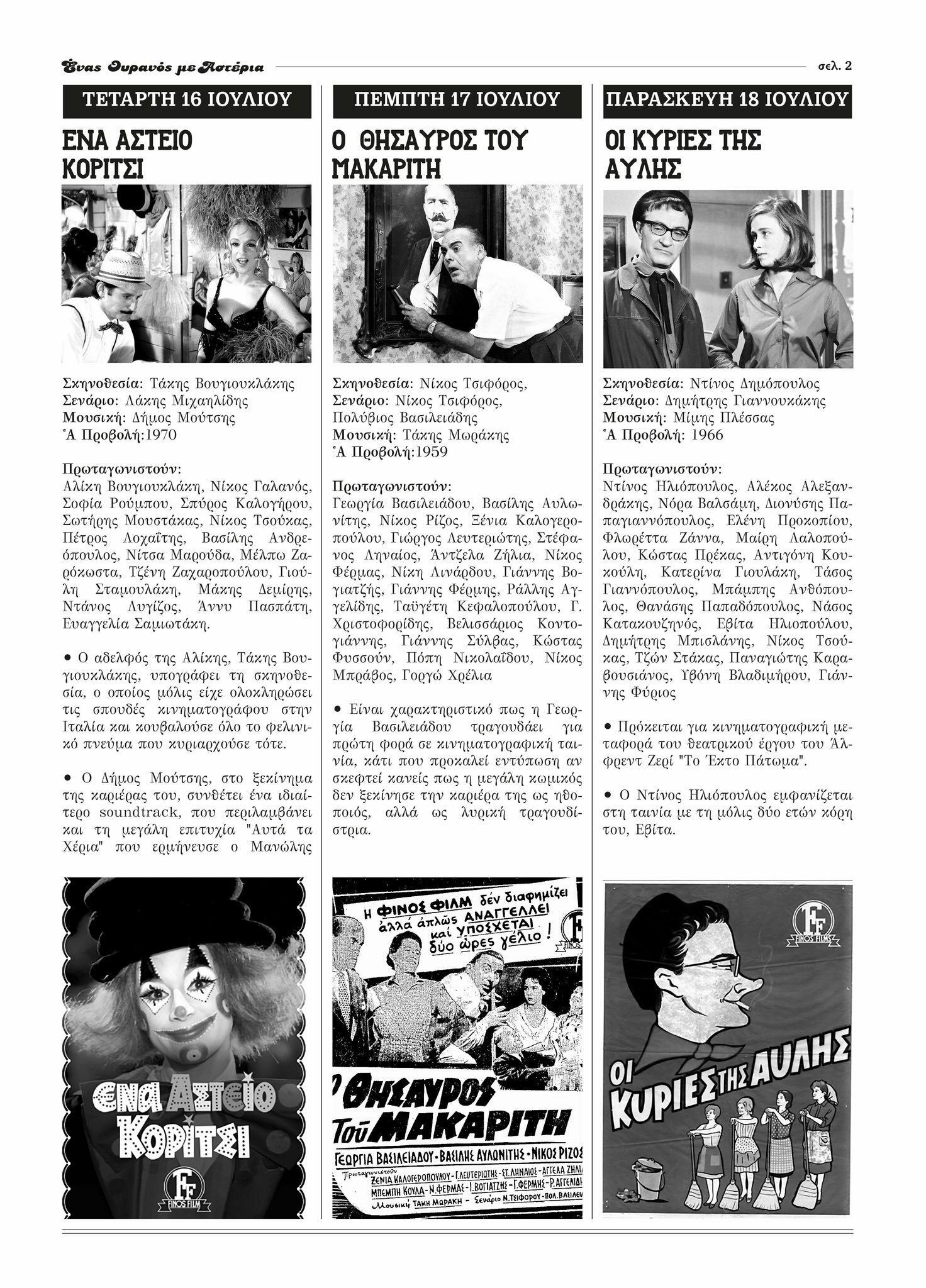 - Τετάρτη 16 Ιουλίου 2025 : ΕΝΑ ΑΣΤΕΙΟ ΚΟΡΙΤΣΙ (1970)