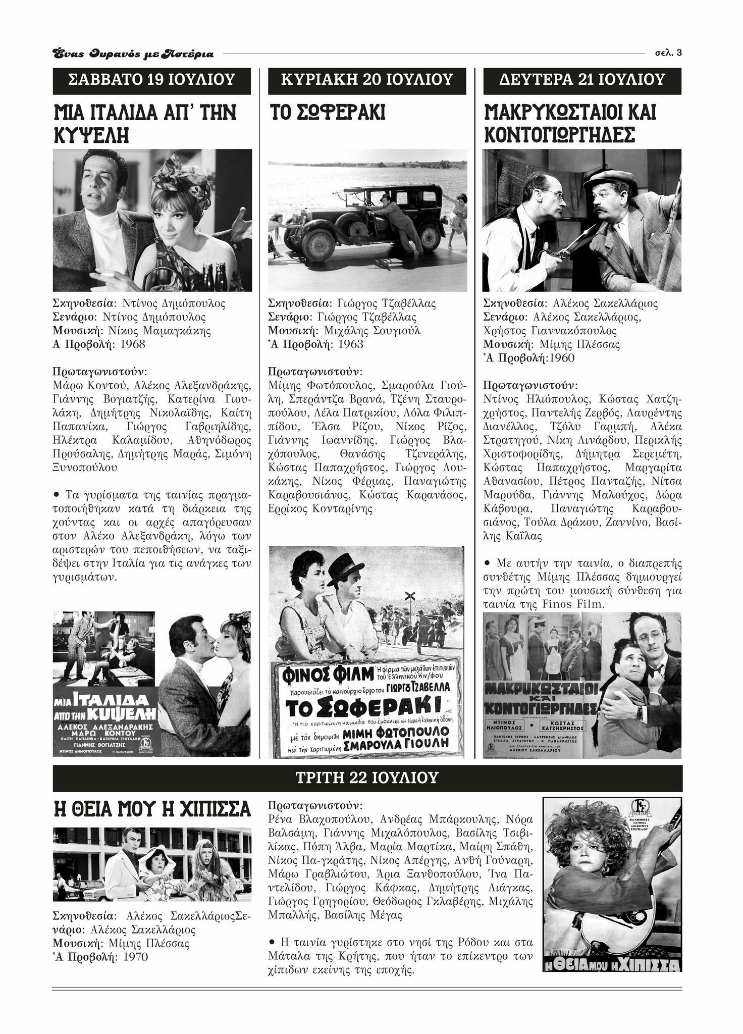 - Τρίτη 22 Ιουλίου 2025 : Η ΘΕΙΑ ΜΟΥ Η ΧΙΠΙΣΣΑ (1970)