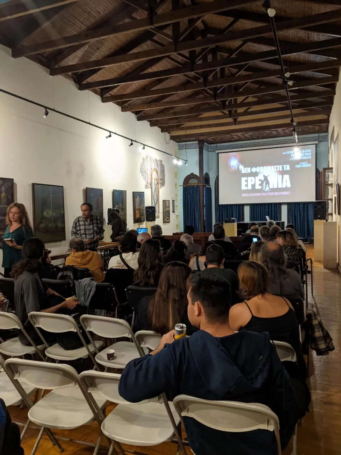 Ο σκηνοθέτης σχολίασε την ταινία αλλά και την πολιτική κατάσταση στην Ελλάδα και την Ευρώπη αναδεικνύοντας την ανάγκη για αντίσταση στις καταπιεστικές πολιτικές που εφαρμόζονται στις μέρες μας και την ενίσχυση του αγώνα των αλληλέγγυων από την Ελλάδα, αλλά και κάθε γωνιά του κόσμου. Ακολούθησαν ερωταπαντήσεις και διάλογος με το κοινό που παρακολούθησε την προβολή.