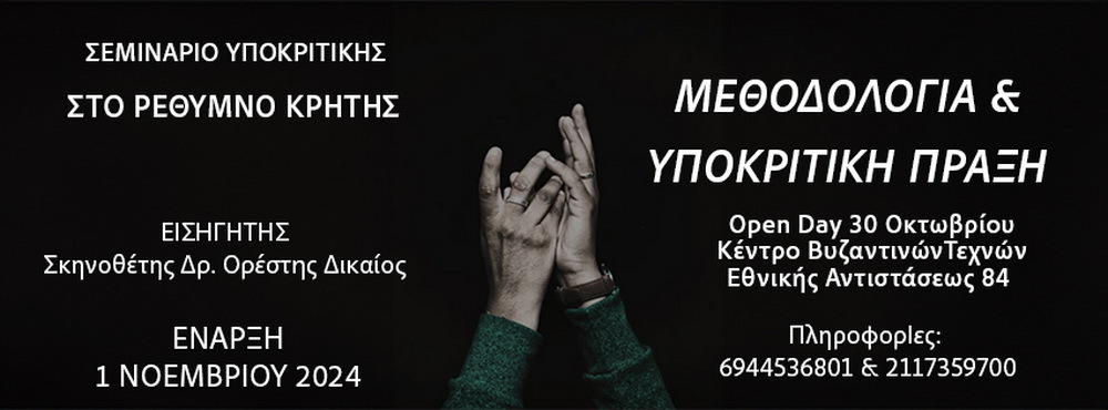 Πρακτικό Σεμινάριο Υποκριτικής στο Ρέθυμνο Κρήτης, με εισηγητή τον σκηνοθέτη και ηθοποιό Ορέστη Δικαίο, διδάκτορα του αγγλικού πανεπιστημίου East Anglia. Η διδασκαλία χωρίζεται σε δύο ενότητες όπου η πρώτη έρχεται να καλύψει την ανάγκη για μια μέθοδο ανάλυσης και προσέγγισης με συγκεκριμένα στάδια ενός κειμένου, (σεναρίου-θεατρικού) με στόχο την ανάδειξη της υποκριτικής του ηθοποιού στον κινηματογράφο και το θέατρο. Η δεύτερη ενότητα είναι μια λεπτομερής εκπαίδευση με μια σειρά από πρακτικές ασκήσεις με αυξανόμενο βαθμό δυσκολίας, που βασίζονται στο σύστημα του Lee Strasberg, όπως εξερευνήθηκε στο Actors Studio, και δημιουργούν ένα συγκεκριμένο κορμό ασκήσεων που μπορεί ο εκπαιδευόμενος να επιστρέφει και να ασκείται.