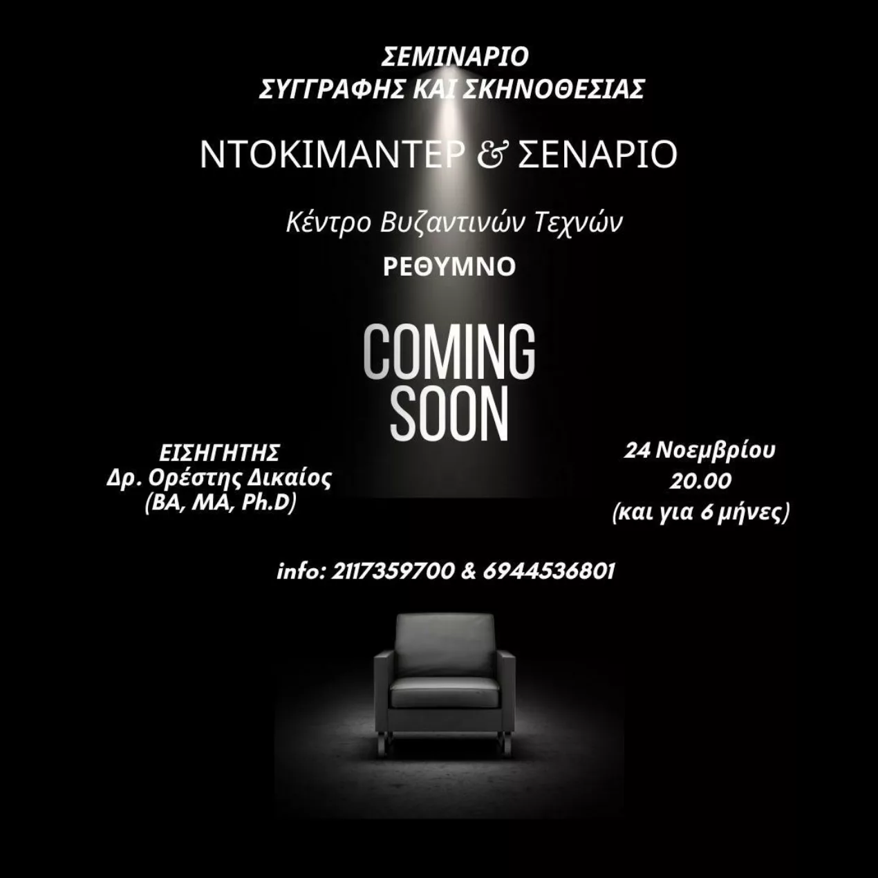 Ένα σημαντικό σεμινάριο θα πραγματοποιηθεί στο Ρέθυμνο από τον Νοέμβριο του 2025 έως τον Απρίλιο του 2026. Πρόκειται για ένα πρακτικό σεμινάριο συγγραφής σεναρίου και ντοκιμαντέρ, το οποίο θα πραγματοποιηθεί από τον Δρ. Ορέστη Δικαίο και επισκέπτες εισηγητές, σε συνεργασία με την Κινηματογραφική Λέσχη Ρεθύμνου.
