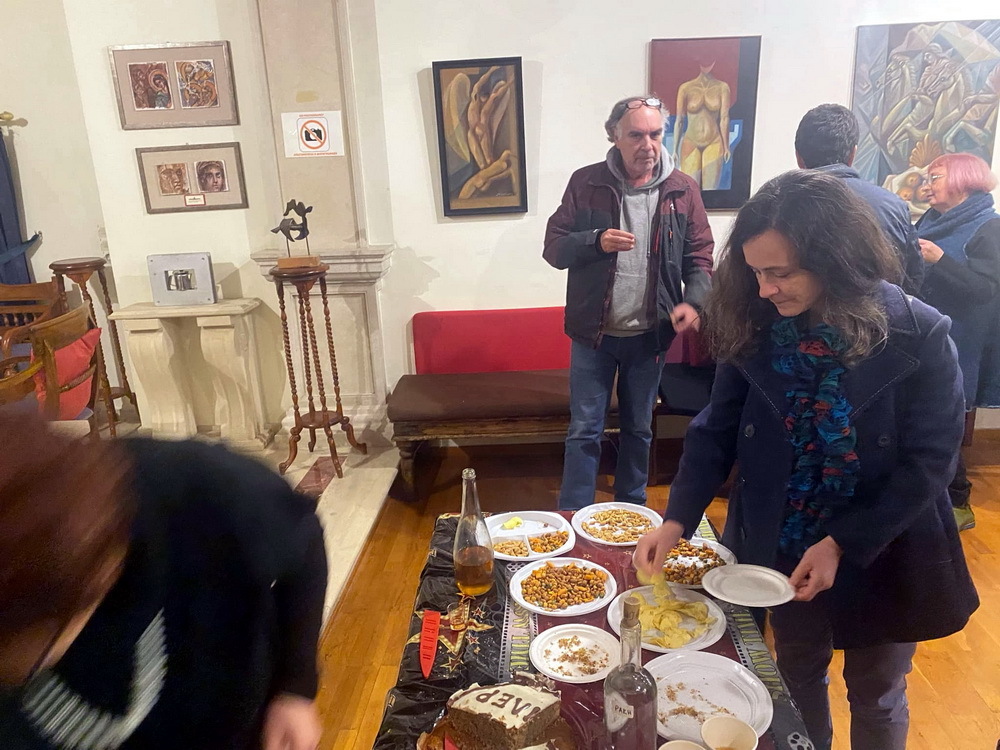 Στη συνέχεια μοιράστηκε η πίτα και προσφέρθηκαν αναψυκτικά και ποτά στους παρευρισκόμενους.